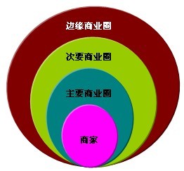 商圈的劃分,一般來講可分為三個(gè)層次,即核心商圈、次級(jí)商圈和邊緣商圈。